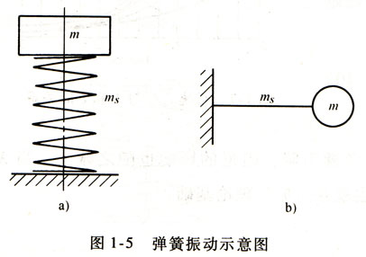 —當(dāng)量質(zhì)量,它是彈簧本身的質(zhì)量和彈簧所聯(lián)結(jié)的質(zhì)量的綜合值(表9-5),如圖1-5所示彈簧系統(tǒng),其