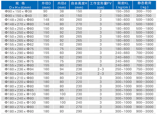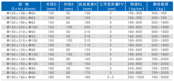 復(fù)合彈簧是由金屬螺旋彈簧和橡膠復(fù)合為一體的彈性體,集金屬彈簧和橡膠彈簧的優(yōu)點(diǎn)于一體,并克服兩者的缺點(diǎn)。形狀和機(jī)械性能穩(wěn)定,能承受載荷和大變形量。隔振降噪效果好,具有工作平穩(wěn),共振區(qū)時(shí)間短等優(yōu)點(diǎn),尤其適用于礦山、冶金、煤炭等行業(yè)的大型振動(dòng)設(shè)備或大型減震設(shè)備。